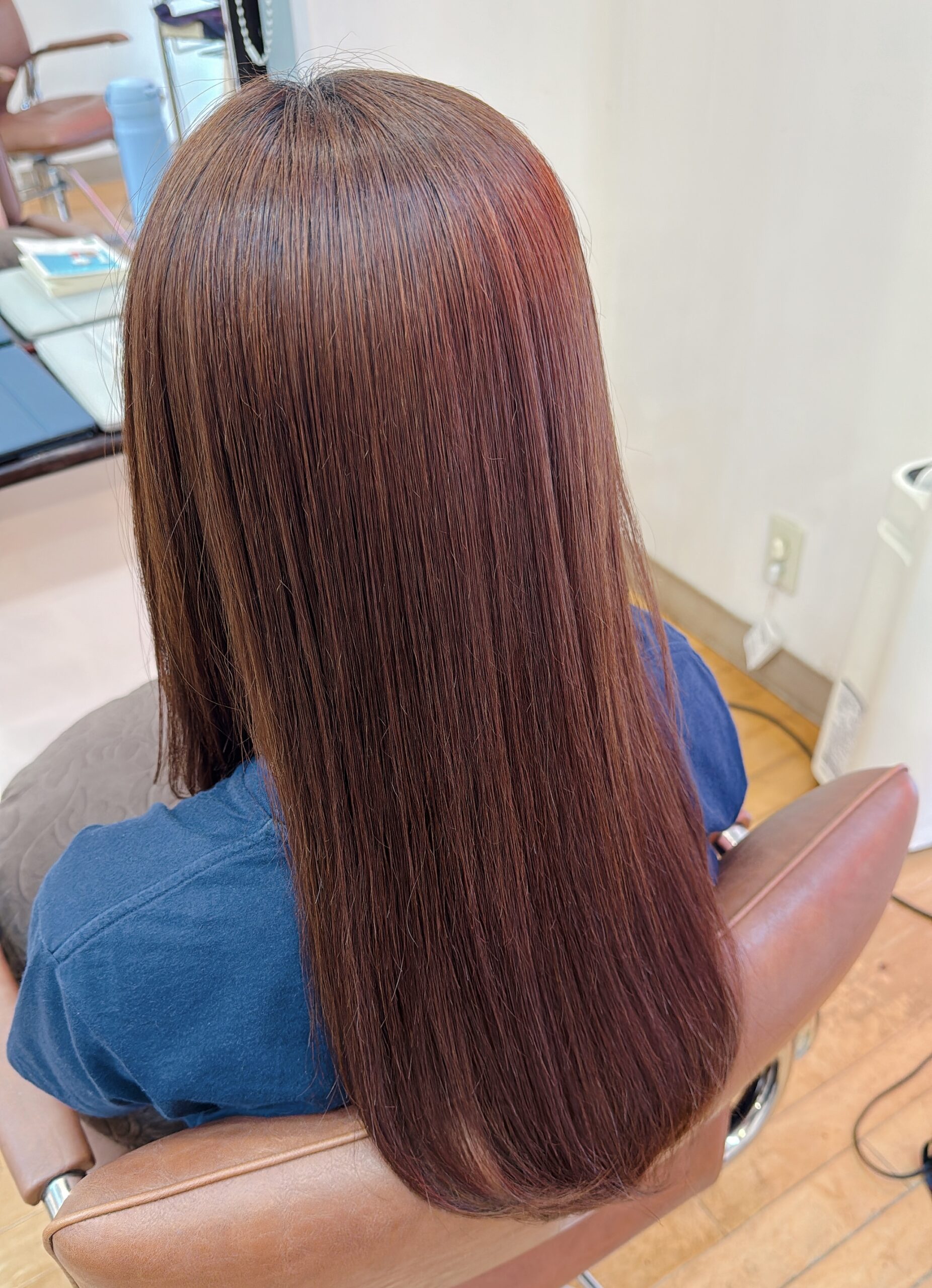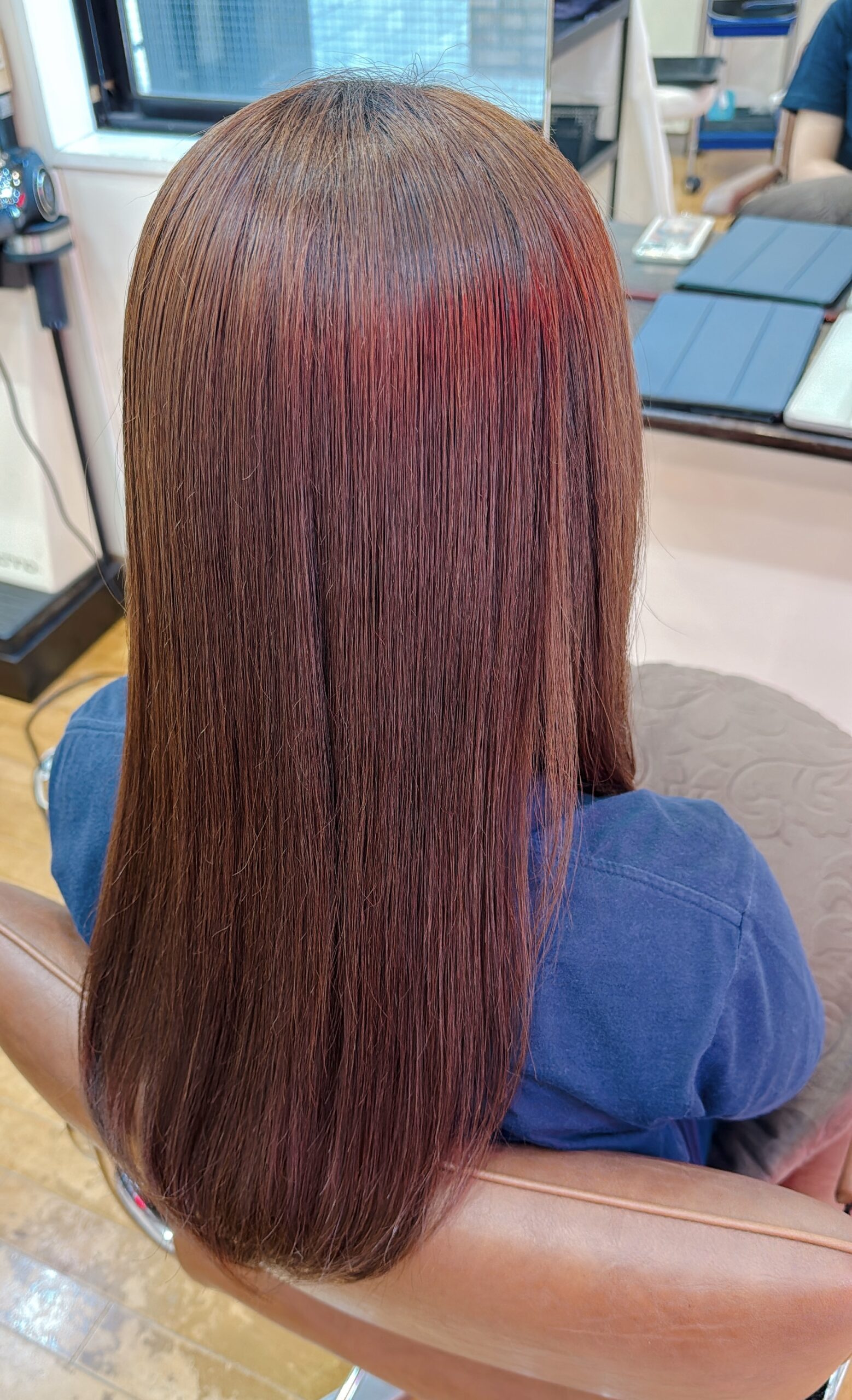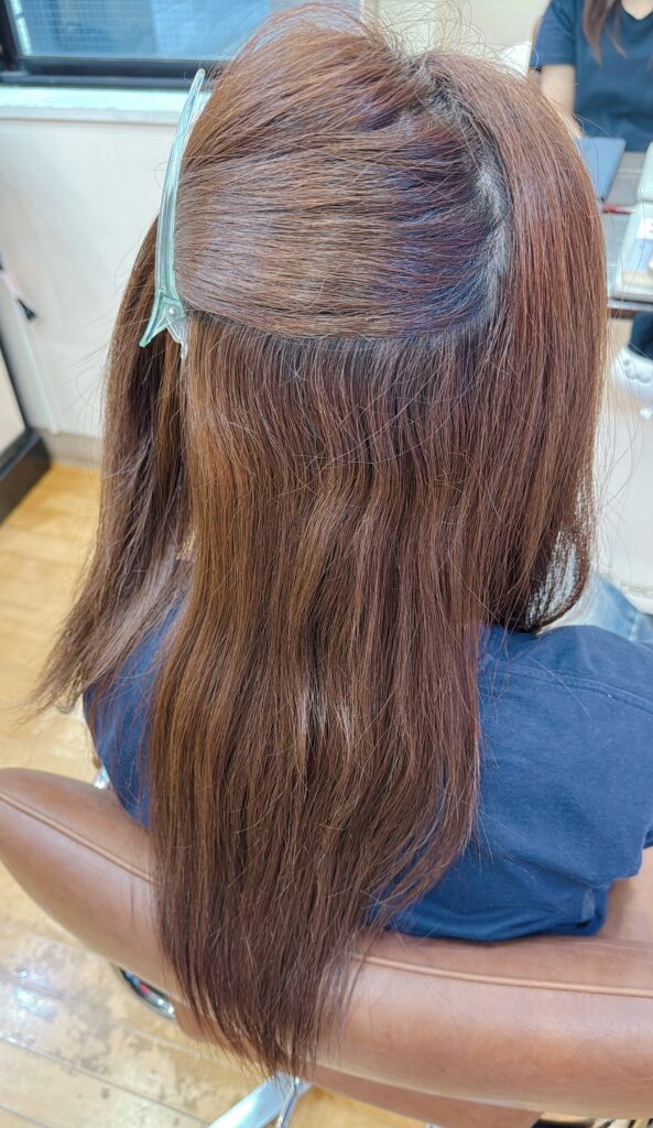 根本部分と中間部分と部分的に3種類お薬を変えて、髪の毛に負担のないようなるべく優しく綺麗にかかるようにさせて頂きました!